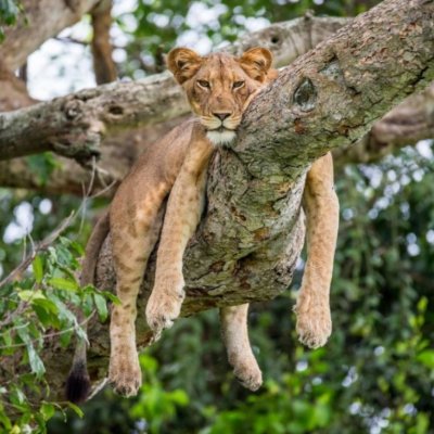 • dienu pavadīsim slavenajā Karalienes Elizabetes nacionālajā parkā (ziemeļdaļā), kuru dzīvnieku daudzveidības dēļ dēvē par Ugandas pērli. Agrā rīta stundā uzsāksim dienu ar safari braucienu Kasenyi savannā, kas ir labākā lauvu vērošanas vieta visā Ugandā. Dienas vidū, kad dzīvnieki meklē veldzi, izbrauksim ar laivu pa Kazinga kanālu, kas savieno Edvarda un Džordža ezerus, vērojot bagātīgās nīlzirgu, bifeļu, ziloņu, pelikānu, marabu un citu putnu sugu kolonijas. Dienu noslēgsim ar Afrikas Lielā Piecinieka fotomedībām izbraukājot Channel Drive, kur gana bieži tūristu redzeslokā nonāk kautrīgais maskēšanās speciālists – leopards.