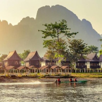 • turpinām iepazīt Vang Vieng apvidu: izbrauciens ar mazām laiviņām pa gleznaino Nam Song upes posmu, vērojot, kā kaļķakmens klintis iznirst no rīsu laukiem