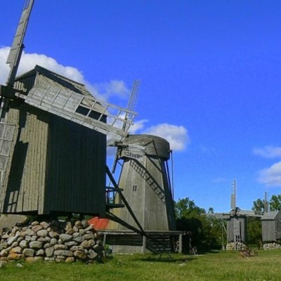 • Anglas vējdzirnavu komplekss, kur redzamas Sāremā tipiskās staba vējdzirnavas (20 gs.sākums) un holandiešu tipa vējdzirnavas.