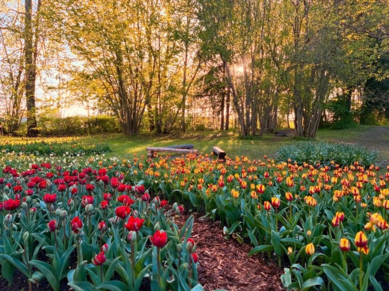 ~ 13:10-15:00 Kirnas muiža - lielākais dabisko tulpju lauks Ziemeļvalstīs un Baltijas valstīs, kur maija vidū vienlaikus zied aptuveni 300 000 tulpju. Tulpju festivāls notiek aptuveni no maija vidus līdz jūnijam.