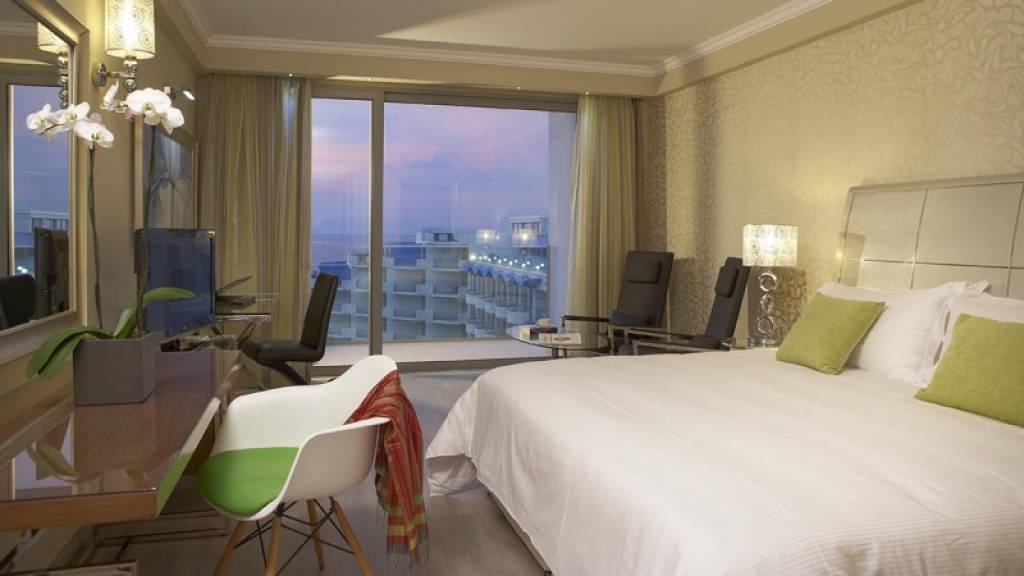 executive room sea view (skats uz jūru, vienistabas numurs, guļamistaba un viesistabas zona, 2 vienvietīgās vai 1 divvietīgā gulta (pēc pieprasījuma), papildu gulta – sofa, maks. 3 cilv., 48 m2);