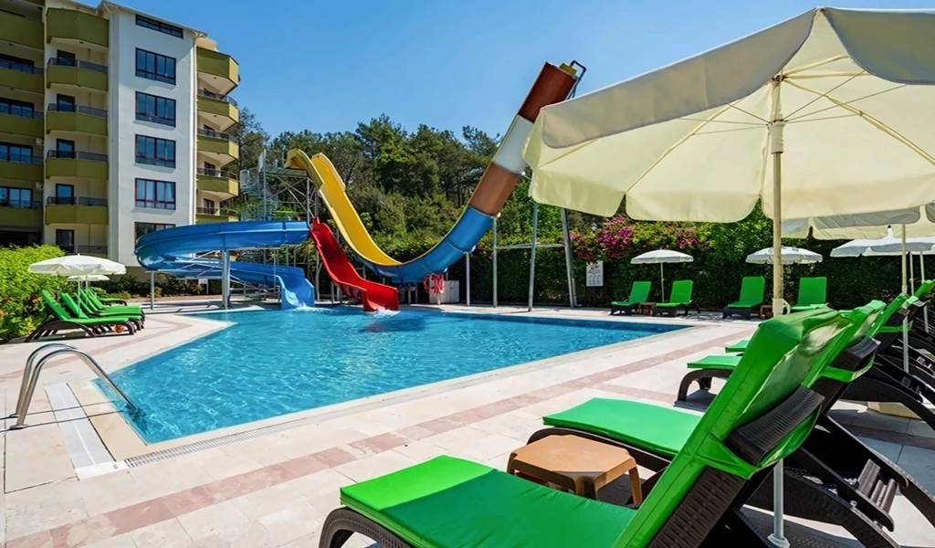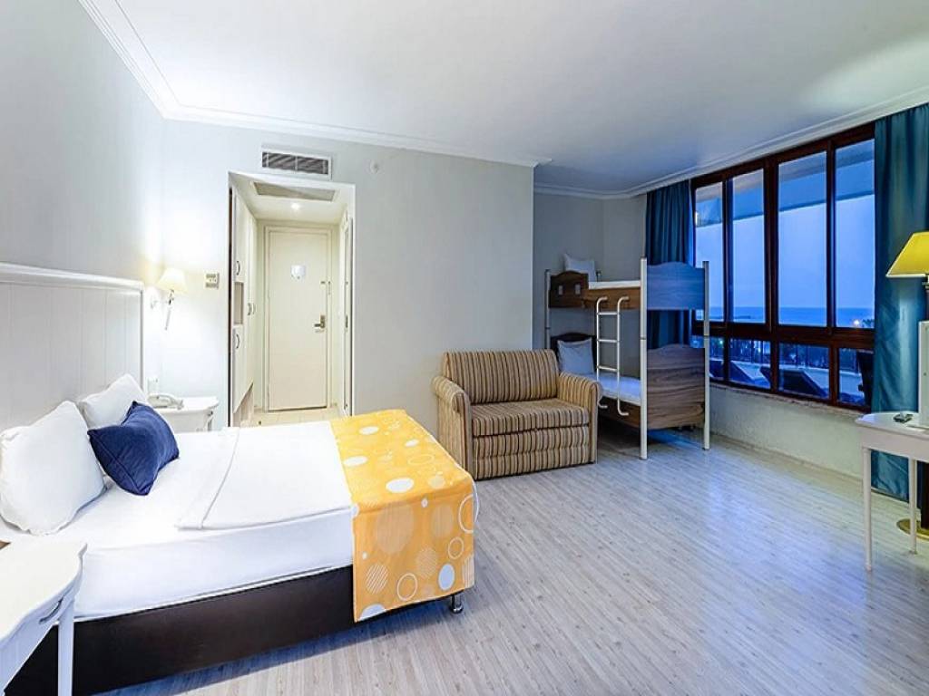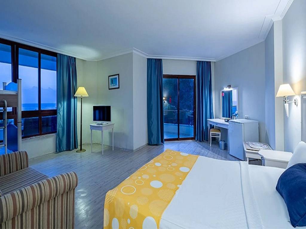 Нормальная бюджетная пятерка. Жила во2-ом блоке. Номер обычный, все в наличии,сантехника старовата,но функционирует.Правда номер не убирался ни разу,хотя там целая стая горничных, вынесли мусор1раз и на этом все.Горячая вода есть всегда,тв с русскими каналами. Еда в ресторане без изысков,но можно выбрать из того, что .есть. Территория ухоженная,чистая. Вода и айран в доступе. Пляж песок,море чудесное.Лежаки и зонты есть. Работники на рецепшене отзывчивые. На врача при отеле очень не рассчитывайте. Берите с собой аптечку первой необходимости.В кабинете нет ничего. предлагают сразу ехать в больницу. В общем отель мне понравился. Вернусь по возможности.