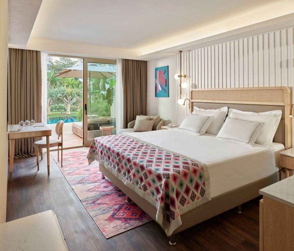 30 vienistabas deluxe room garden swim up (terase ar izeju uz baseinu un ar atpūtas krēsliem; maks. 2+1 vai 3 cilv., 44-48 m2);
