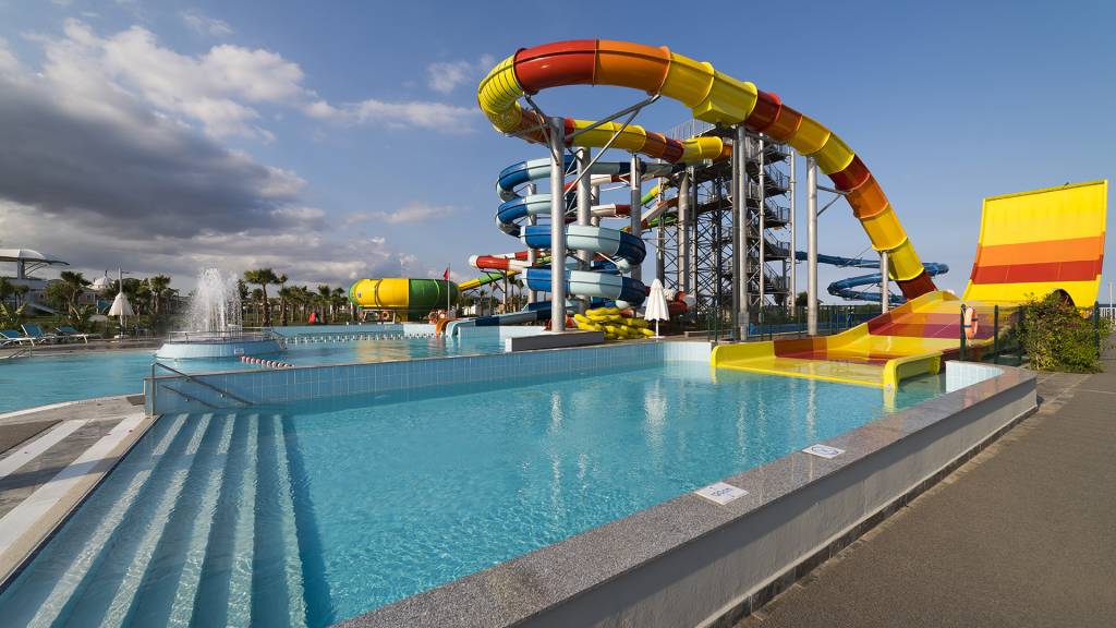 4 baseini: 3 ārējais un 1 iekštelpu baseins, 3 bērnu baseini, bezmaksas sauļošanās krēsli un saulessargi baseinu zonā, akvaparks ar 7 slidkalniņiem, fitnesa centrs, sauna, pirts, tenisa korts, mini klubs (4-8 gadi), junioru klubs (vasarā 8-12 gadi), pusaudžu klubs (vasarā 12-16 gadi), diskotēka, dienas un nakts animācijas programma; par papildu samaksu: biljards, tenisa nodarbības un aprīkojums, ūdens sporta veidi, labsajūtas centrs, masāžas.