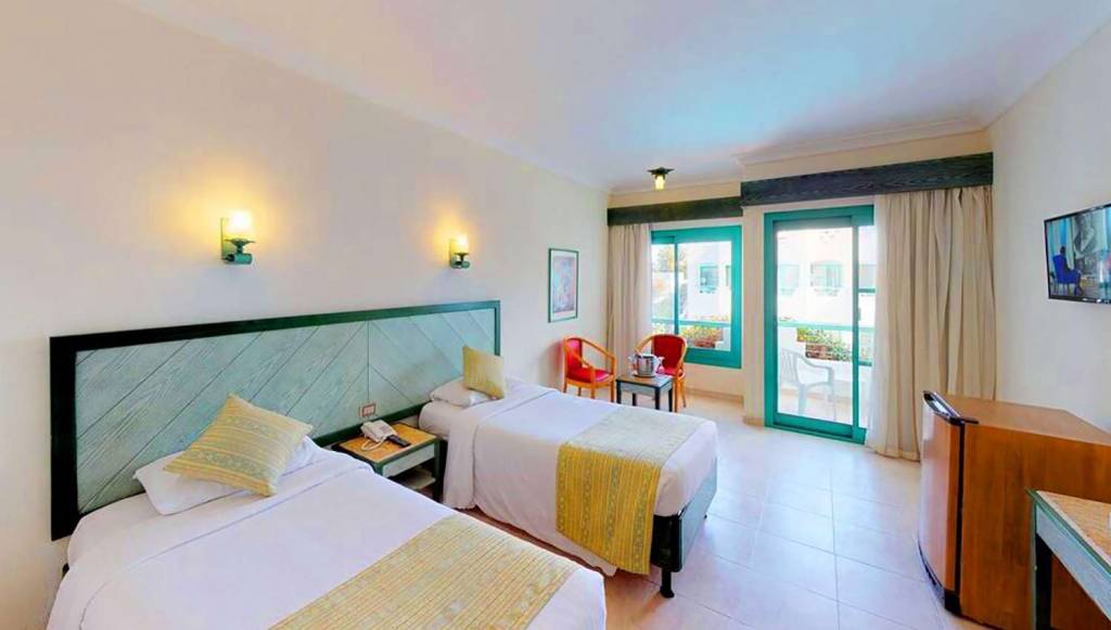 standard room (back, garden view; duša, balkons vai terase (ne visos numuros), maks. 2+2 cilv., 28 m2). Iespējama tikai 1 papildu gulta – single bed.