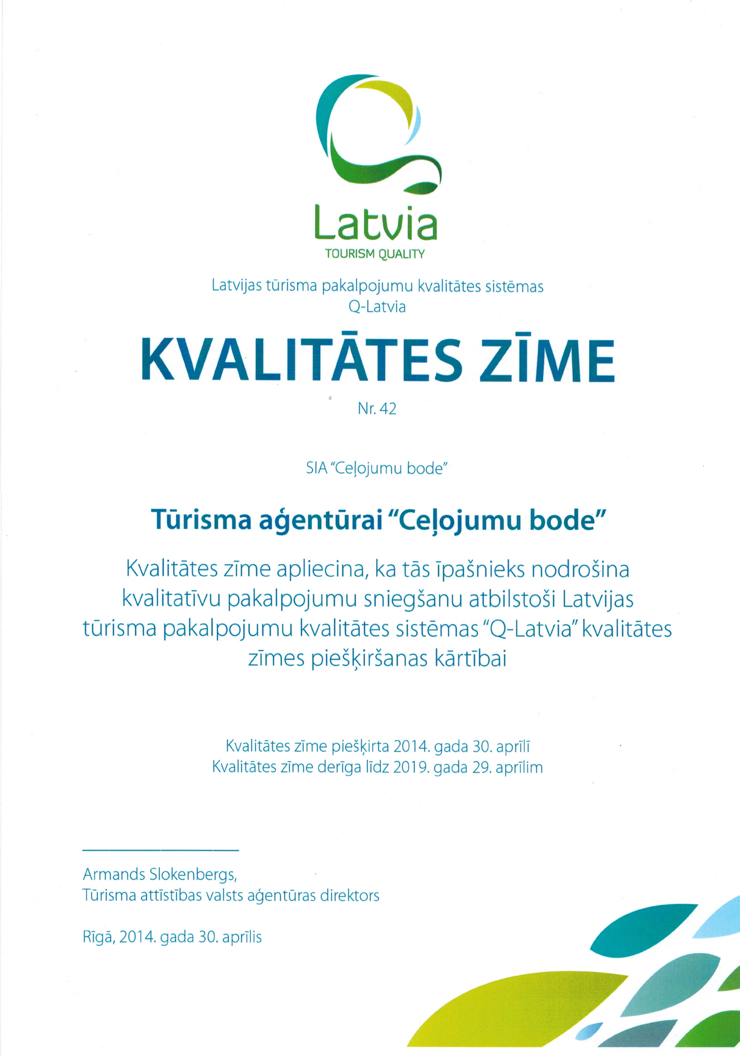 - Licence Nr. T-2018-27 tūrisma aģenta un tūrisma operatora pakalpojuma sniegšanai
