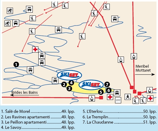 Meribela (Méribel) – brīnišķīgs Alpu kūrorts, kas celts Savojas ciematiņu stilā no koka un akmeņiem, un burvīgi iederas skaistajā ar mežiem apaugušo kalnu ainavā. 1992. gadā te notika Olimpisko spēļu sacensības hokejā un sieviešu slalomā. Meribela ir iekarojusi daudzu apmeklētāju sirdis. Sirds ir arī kūrorta emblēma, tādēļ, ka Meribela atrodas pasaulē lielākā slēpošanas apgabala Trīs ieleju pašā vidū.