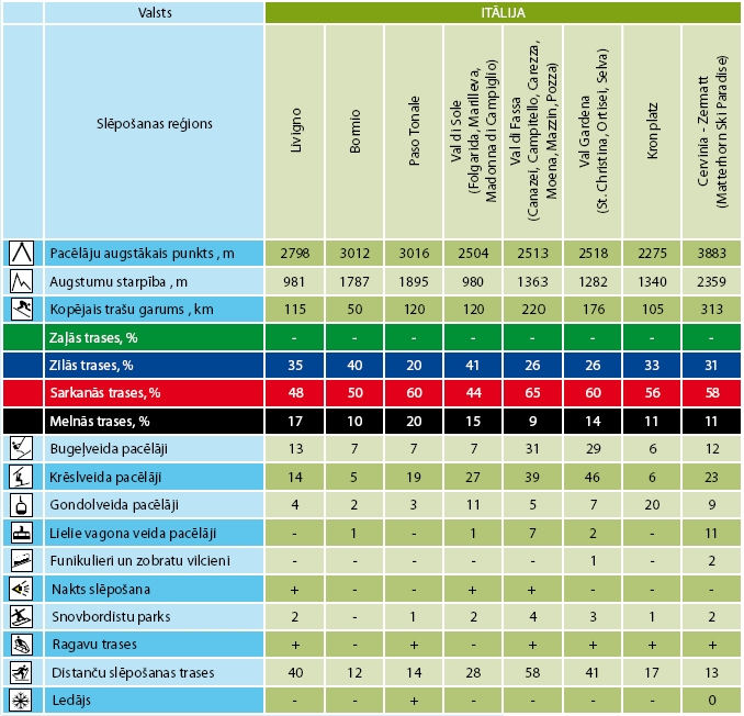standartiem. Kalnu slēpošanas kūrortos (atkarībā no reģiona) dominē