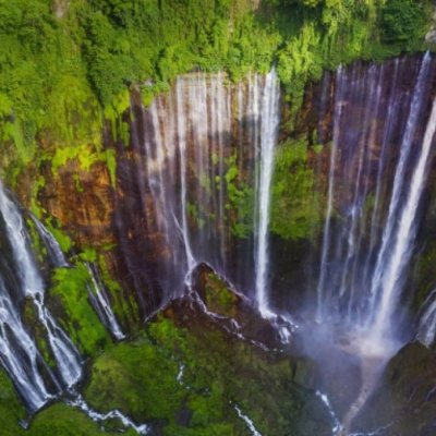 • Indonēzijas lielais noslēpums – 120 m augstais un gandrīz 300 m platais, ūdens plīvuram līdzīgais Tumpak Sewu – viens no Āzijas skaistākajiem un varenākajiem ūdenskritumiem, kas tulkojumā nozīmē 1000 kaskādes. Ūdenskrituma apskate no augšējā skatu punkta, no kura paveras labākā panorāma ar vareno kaskādi. Pēc tam grupa tiks dalīta 2 daļās: 1.) aktīvākie ceļotāji dodas lejā pārgājienā (kopā ~3-4 h, vietām taka stāva, slidena) uz Tumpak Sewu pakāji, lai redzētu ūdenskritumu no apakšas un sajustu tā spēku, kā arī apmeklē blakus esošo Goa Tetes jeb Tetes alas ūdenskritumu, kas vairākās kaskādēs graciozi gāžas pār klinšu sienu un alu; 2.) otra grupas daļa apmeklē otru augšējo Tumpak Sewu ūdenskrituma skatu vietu un dodas izbraucienā uz Panorama Kapas Biru skatu vietu, kur atklājas panorāma ar Kapas Biru kaskādi.