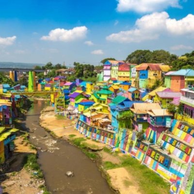 • Kampung Warna Warni jeb tautā sauktais Rainbow village (Varavīksnes ciems) pie Malangas – košās krāsās krāsotais un ļoti fotogēniskais ciemats žilbina ceļotāju acis un fotokameras.