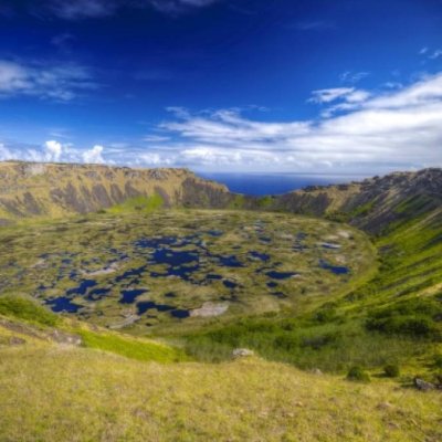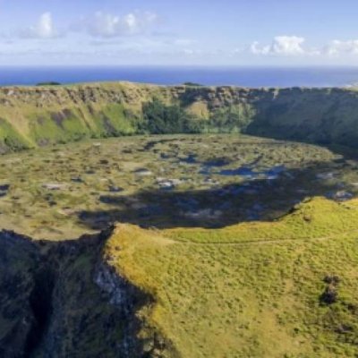 • pēcpusdienā ekskursija uz salas Rietumdaļu (~3,5 h): iespaidīgais Rano Kau vulkāns, no kura malas iespējams ieskatīties milzīgā, daļēji applūduša un purvainā krātera dzelmē.