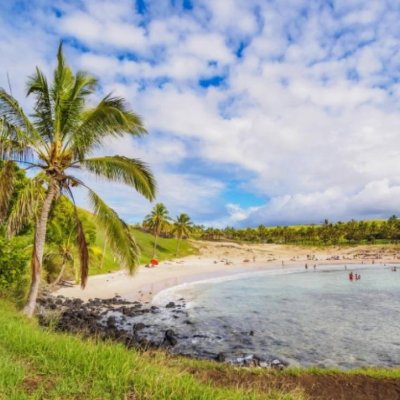 • atpūtas pauze Anakena Beach – Rapa Nui Paradīzes stūrītis ar palmu ieskautu pludmali, kuru Tūrs Heijerdāls nosaucis par skaistāko vietu Lieldienu salā. To dēvē arī par teiksmaino Ķēniņu ieleju, jo tieši šeit krastā izkāpis pirmais Lieldienu salu karalis Hotu Matua. Ahu Nau Nau akmens vīriņu rinda, kuri laiski pozē uz palmu fona un sauļojas skaistajā pludmalē.