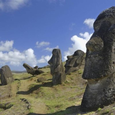 • slavenākais no Rapa Nui vulkāniem Rano Raraku, kas kalpoja kā raktuvju vieta, kur tika veidotas milzu akmens galvu statujas, kas tagad haotiski izkaisītas pa visu kalna nogāzi.