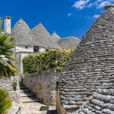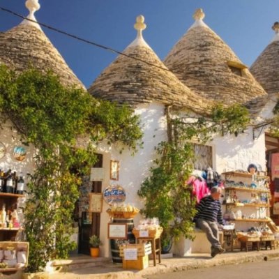 • Alberobello (UNESCO) demonstrē Apūlijai raksturīgo trulli arhitektūru. Sirreālo ieliņu līkločos, kur balto namu konusveida jumtus rotā maģiskas zīmes šķiet, ka sapnis pārtop īstenībā. No panorāmas terasēm paveras simtiem namu, kuros līdzās ierastajai ikdienas dzīvei omulīgi iekārtojušies suvenīru veikali, restorāni, kafejnīcas.