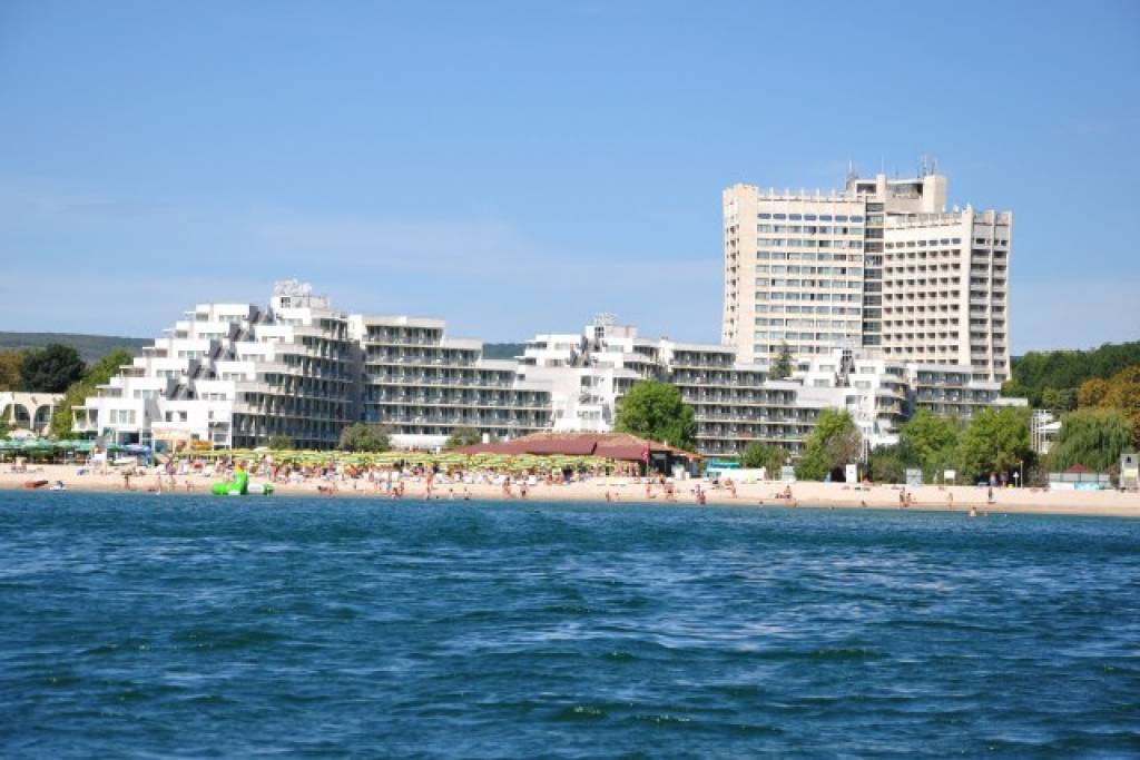 в центре курортного комплекса Албена, в 40 км от аэропорта города Варна, в 160 км от аэропорта города Бургас, в центральной части курорта, в 300 м от пляжа. Построен в 1983 году, состоит из одного 18-этажного здания.