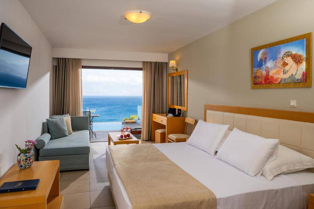 Отельный комплекс построен на возвышении, откуда открывается панорамный вид на залив Мирабелло. В пешей доступности расположен город Агиос Николаос с множеством ресторанов, кафе и магазинов. Ухоженная зеленая территория, уютные номера, хорошее питание и развитая инфраструктура - отличительные черты отеля. Из-за наличия спусков и подъемов не рекомендуется гостям, испытывающим трудности в передвижении. Рекомендуем для отдыха семей и пар вдали от городской суеты.