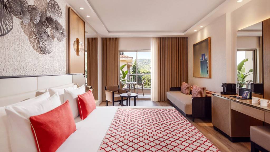 300 deluxe room (из них 4 номеров для людей с ограниченными возможностями (28 м2), одна большая или две отдельные кровати, макс. 2 взр +1 ребенок +1 инфант., 30–42 м2);