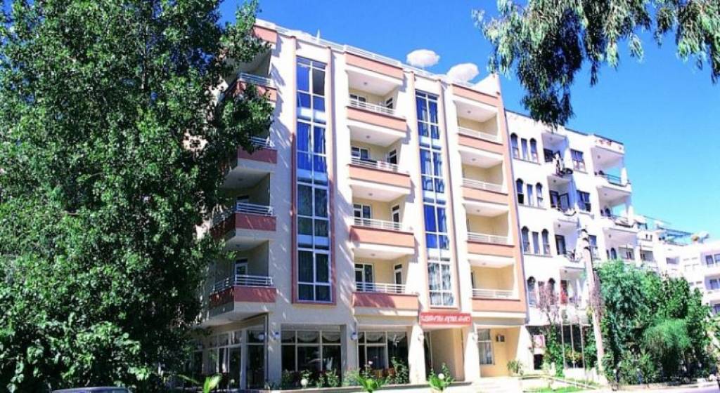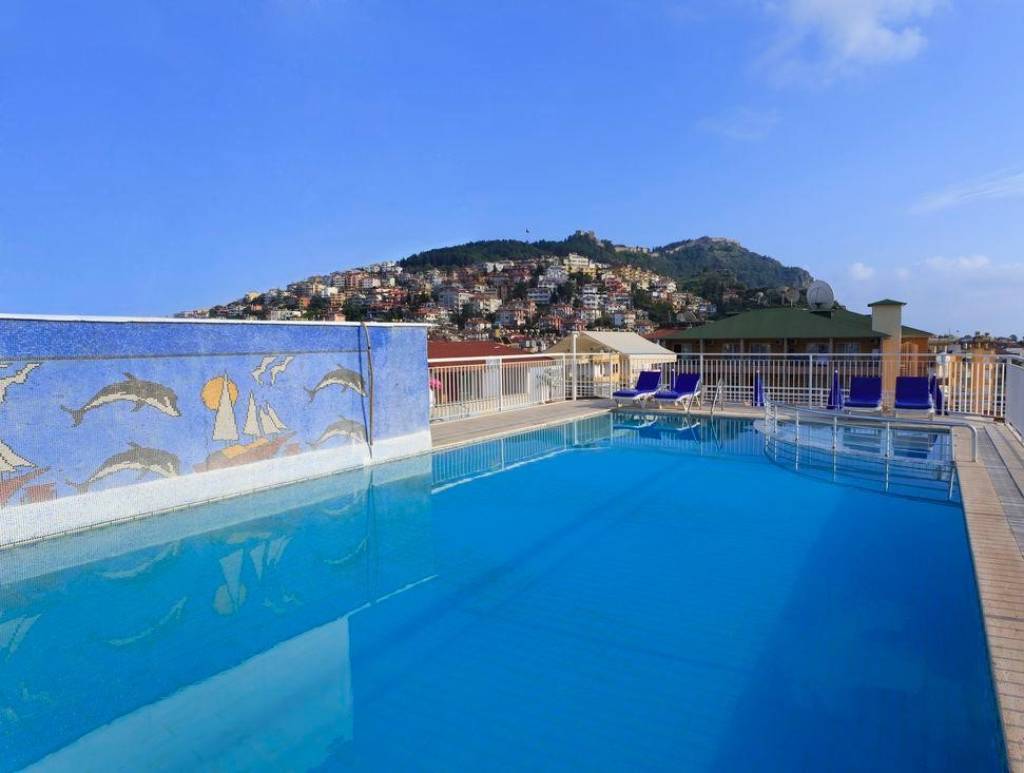 в 120 км от аэропорта г. Анталья, в центре г. Алания,  в 300 м от знаменитого пляжа Клеопатра.