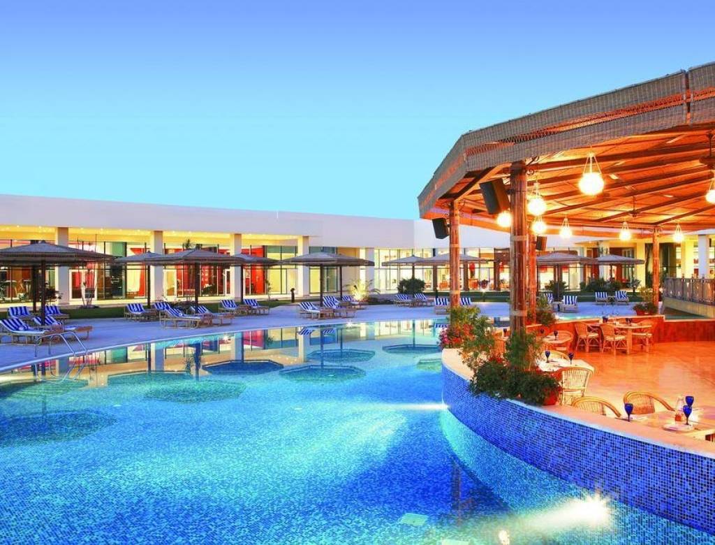 в 3 км от аэропорта Шарм-эль-Шейха, в 7 км от Naama Bay и в 12 км от Старого города, в районе Sharks Bay, на второй линии.