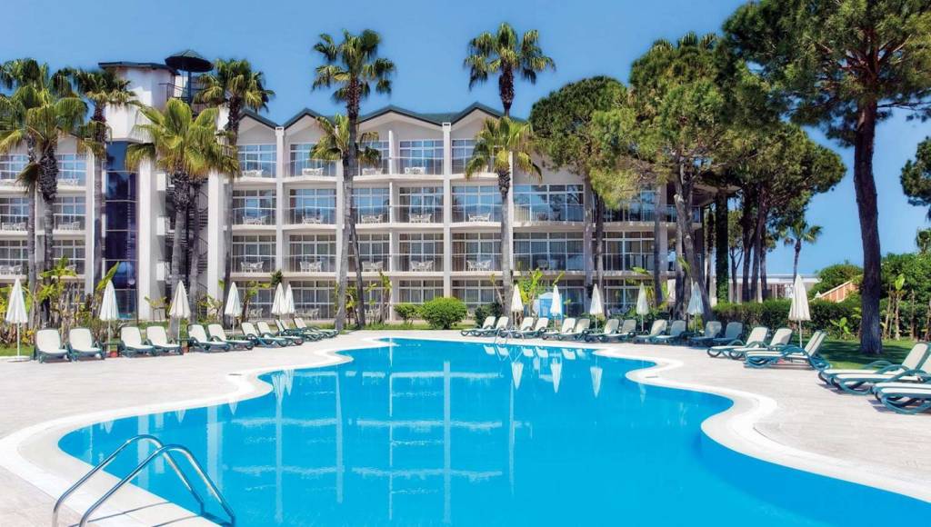 в 65 км от аэропорта г. Анталья, в 6 км от г. Кемер, в поселке Кириш, на самом берегу моря.