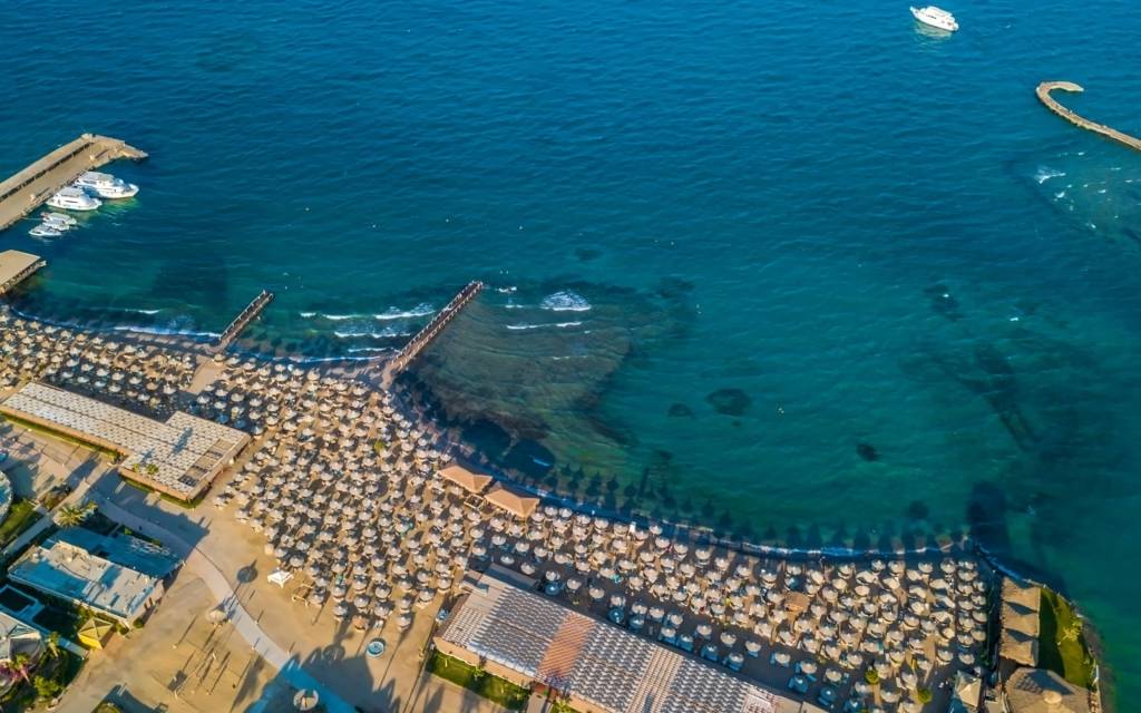 в 8 км от аэропорта Хургады, в 15 км от центра города, на самом берегу моря.