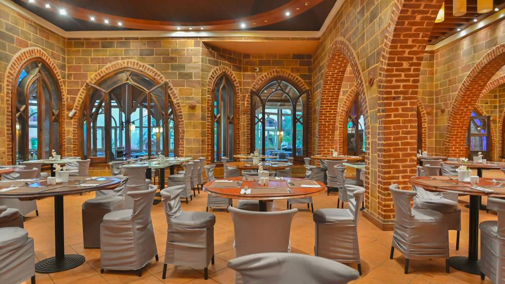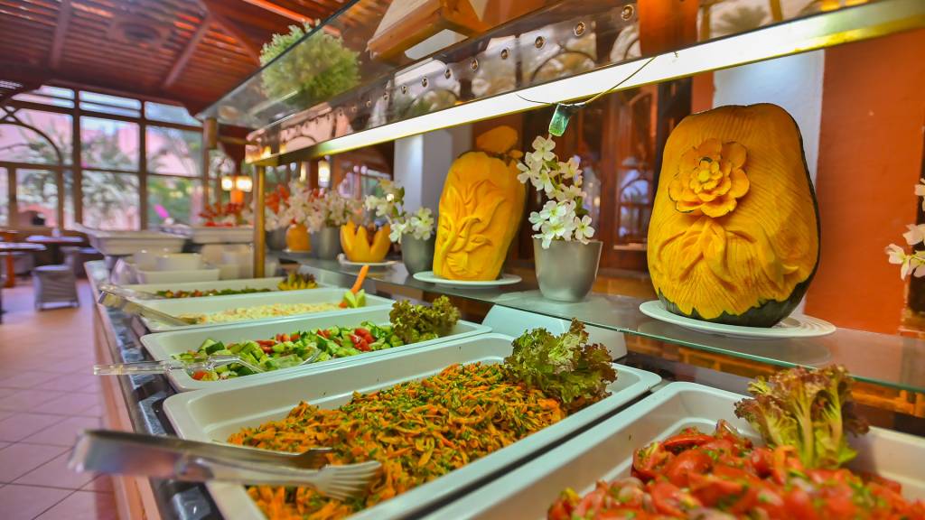 Brokastis (7:30-9:30), pusdienas (12:00-14:00), vakariņas (19:00-21:30)- “zviedru galds” galvenajā restorānā; vēlās brokastis bārā pie baseina (9:30-11:00); uzkodas bārā pie baseina (11:30-17:00); vietējie alkoholiskie un bezalkoholiskie dzērieni noteiktos bāros (9:00-24:00), vīns tikai pusdienu un vakariņu laikā galvenajā restorānā.
