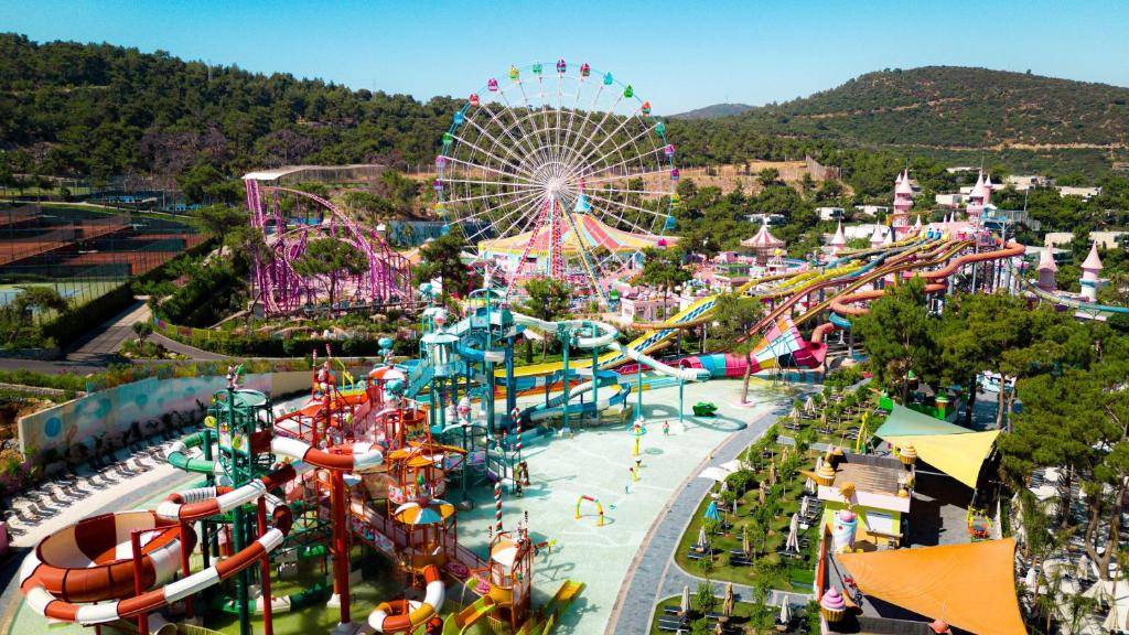 Описание отеляОтель VIP-класса: роскошные интерьеры и современный комфорт. Самая лучшая детская концепция на Эгейском побережье: Детский город, Луна Парк, Динопарк и самый большой отельный аквапарк. В основном ресторане и четырех ресторанах a la carte предлагается огромный выбор отменных блюд на любой вкус, в многочисленных барах – всевозможные напитки местного и импортного производства; в великолепно оборудованном спа-центре есть все необходимое для релаксации и восстановления сил. Идеальный выбор для эксклюзивного отдыха в окружении изумительной природы эгейского побережья Турции.