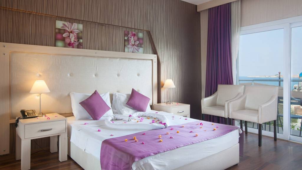 Стандартный номер: двухместный (макс. 3 взрослых или 2+1 ребенок, с 1 дополнительной кроватью – обычной или раскладной), около 20 м², индивидуальный кондиционер; санузел (душ, туалет, фен); спутниковое телевидение, телефон, сейф, Wi-Fi, балкон; вид на море и горы. За дополнительную плату: мини-бар.
