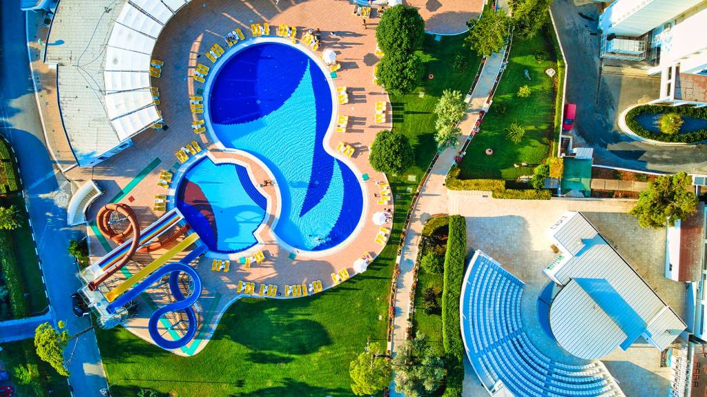 5 открытых бассейнов, детский бассейн, 3 крытых бассейна в зоне СПА, сауна, турецкая баня, шезлонги и зонтики у бассейнов, аквапарк с горками, мини-клуб (4-12 лет), диджей, анимационная программа, баскетбольная площадка, футбол поле, теннисный корт; за дополнительную плату: игровой центр (бильярд, пинбол, игровые автоматы).