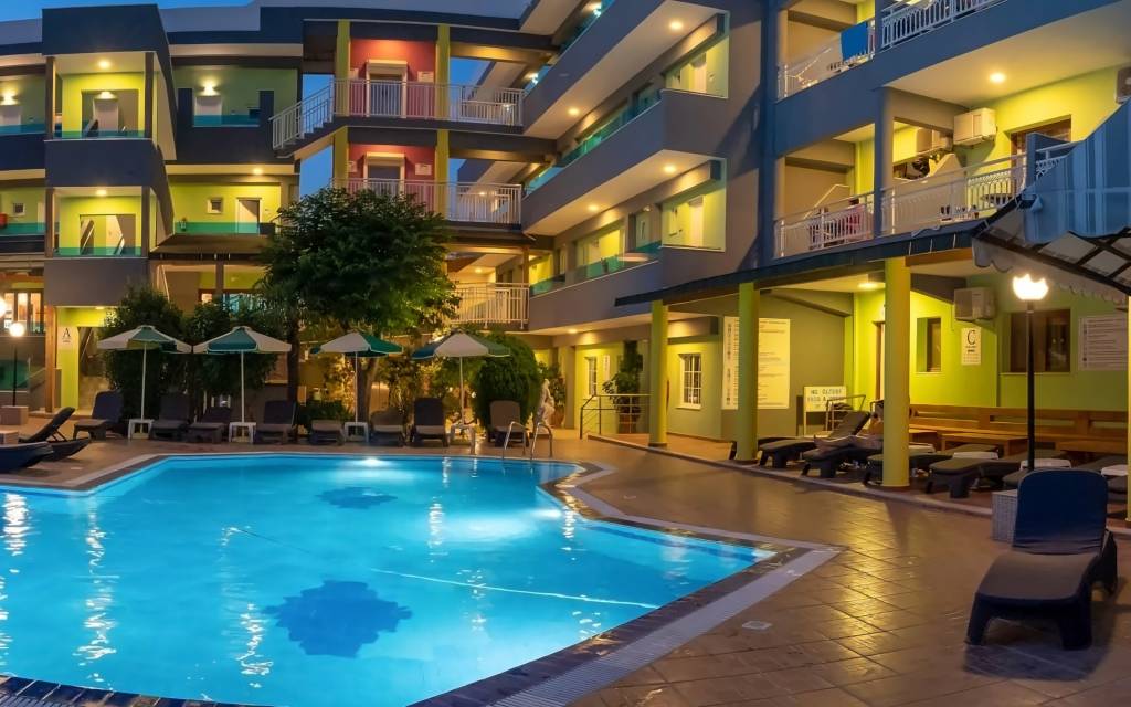 Небольшой отель, с ограниченной ухоженной территорией. Достаточно развитая инфраструктура для категории отеля. Отличный бюджетный вариант для тех, кто желает находиться в центре ночной жизни курорта Фалираки. Рекомендуем, как любителям спокойного отдыха, так и молодёжи.