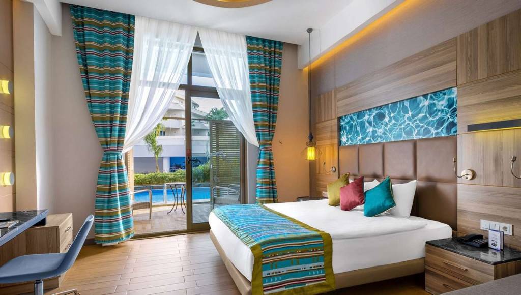 10 Двухэтажных Swim Up Family Dublex Room (в здании Harmony, с выходом к бассейну, на первом этаже – двуспальная кровать, раскладывающийся диван, балкон с выходом на бассейн; на втором этаже - двуспальная или 2 односпальные кровати, макс. 4 чел., 49 м2);